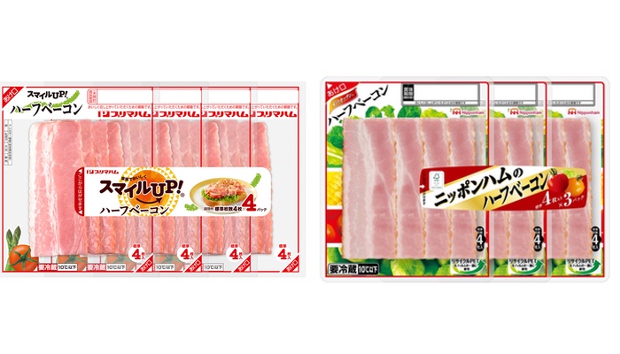 こんにちは。10月27日(月)のお題です。今日はベーコン対決です。日本ハム 彩りキッチン ハーフベーコン原材料:豚ばら肉(輸入)、還元水あめ、大