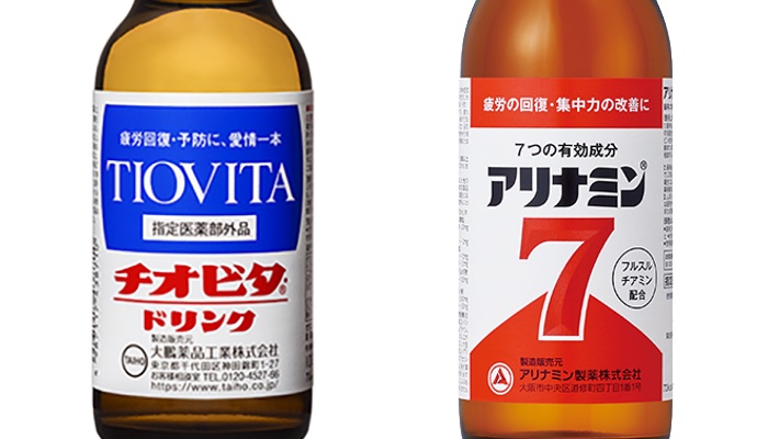 こんにちは。10月25日(日)のお題です。今日は栄養ドリンク対決です。アリナミン7成分:中フルスルチアミン塩酸塩(ビタミンB1誘導体)2.5mg