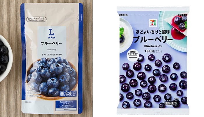 こんにちは。10月12日(日)のお題です。今日はコンビニの冷凍ブルーベリー対決です。最近週に4〜5回、冷凍ブルーベリーを食べています。セブン