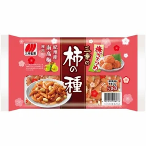 原材料:ピーナッツ(中国産)、もち米、砂糖、しょうゆ(小麦・大豆を含む)、デキストリン、植物油脂、食塩、梅ペースト、かつお節エキス、梅肉パウダー(紀州産南高梅95%使用)/酸味料、香料、調味料(アミノ酸等)、糊料(プルラン)、着色料(パプリカ色素、アントシアニン、アカビート)