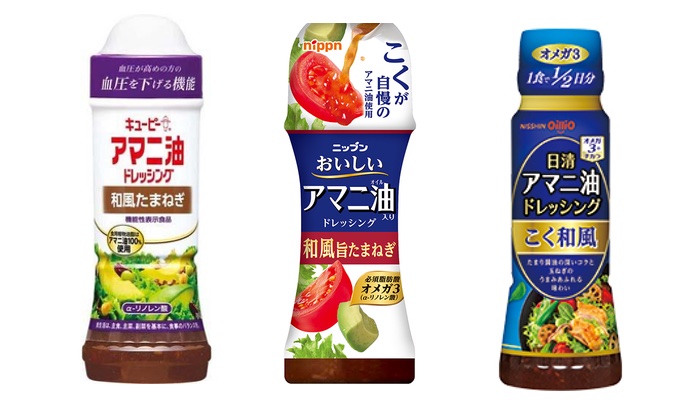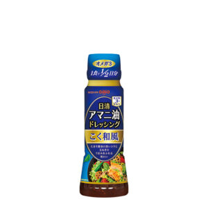 原材料:食用植物油脂(国内製造)(なたね油、アマニ油、大豆油)、醸造酢、砂糖、醤油(小麦を含む)、たまねぎ、食塩、香味食用油、オリーブ、粉末醤油、香味節エキス、酵母エキス、香辛料、チキンブイヨン(乳成分を含む)、椎茸エキス / 調味料(アミノ酸)、増粘剤(キサンタンガム)