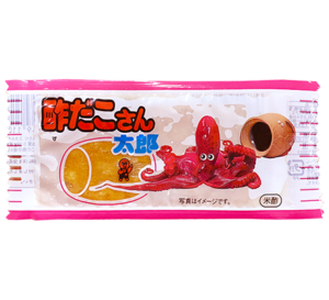 原材料:魚肉すり身(魚肉、砂糖)(国内製造)、小麦粉、イカ粉、砂糖、梅酢、梅肉エキス/調味料(アミノ酸等)、ソルビット、酸味料、香料、カラメル色素、甘味料(ステビア、甘草)、乳酸ナトリウム、(一部に小麦・いか・乳成分・大豆を含む)