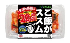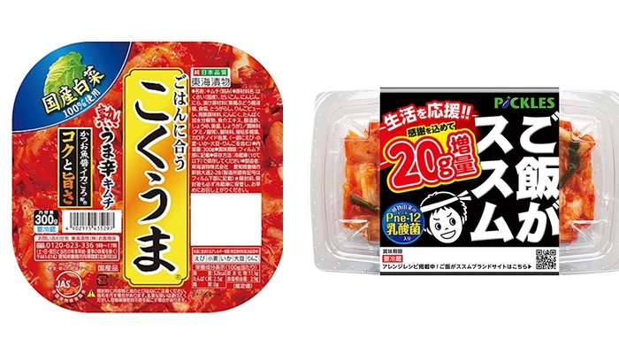 原材料:白菜、大根、にら、漬け原材料〔醸造酢、唐辛子、食塩、りんご、にんにく、還元水飴、オキアミ塩辛、魚介エキス、糖類(果糖、砂糖)、蛋白加水分解物、発酵調味液、かつお節、生姜、ごま、乳酸菌(加熱菌体)、昆布、魚醤(魚介類)、酵母エキス、大豆発酵調味料、昆布エキス〕/調味料(アミノ酸等)、酸味料、増粘多糖類、甘味料(ステビア、スクラロース)、(一部に小麦・ごま・さけ・大豆・りんご・魚醤(魚介類)を含む)